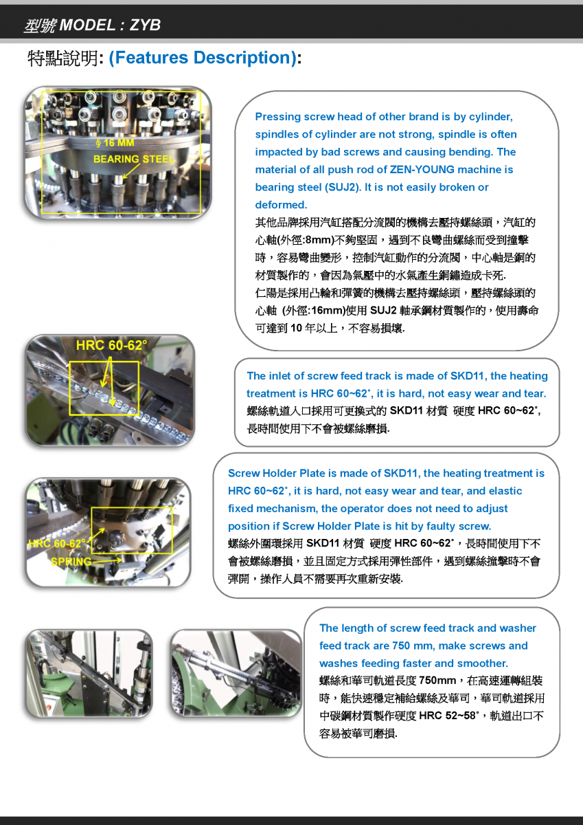 Full-Process Sensor Monitoring: Equipped with sensors at every stage to monitor workflow. This ensures easy troubleshooting and guarantees the safety of both the operator and the machine.Patented Mechanical Cam Hold-Down Mechanism: Features a new patented mechanical cam design for the screw head hold-down system. This replaces traditional diverter valves and pneumatic cylinders, significantly reducing failure rates and improving stability.