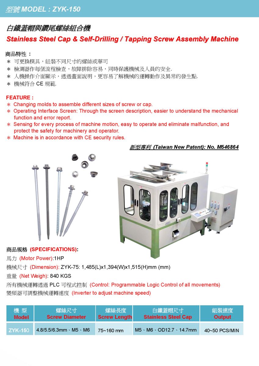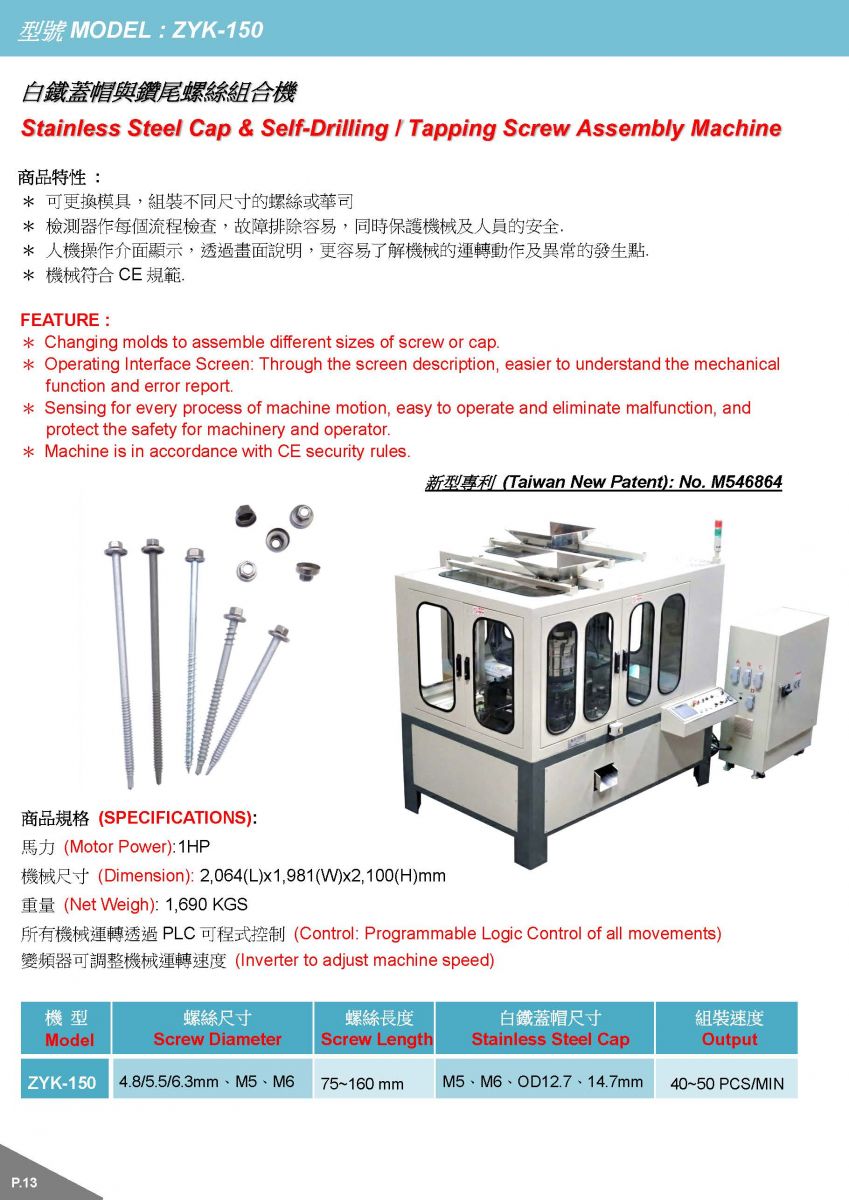 Stainless Steel Cap & Long Self - Drilling / Tapping Screw Assembly Machine