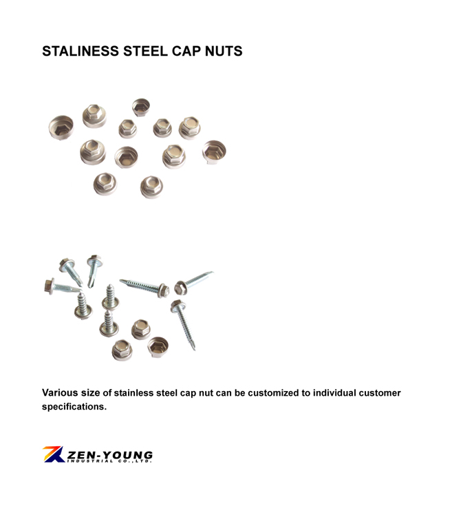 Various size of stainless steel cap nuts can be customized to individual customer specifications.