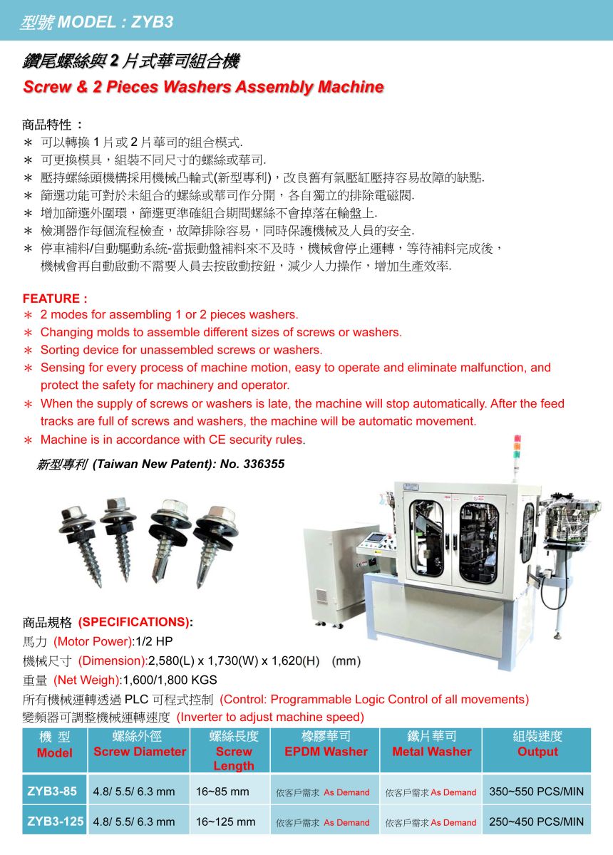 ● 停車補料/自動驅動系統-當振動盤補料來不及時,機械會停止運轉,等待補料完成後,機械會再自動啟動不需要人員去按啟動按鈕,減少人力操作,增加生產效率.