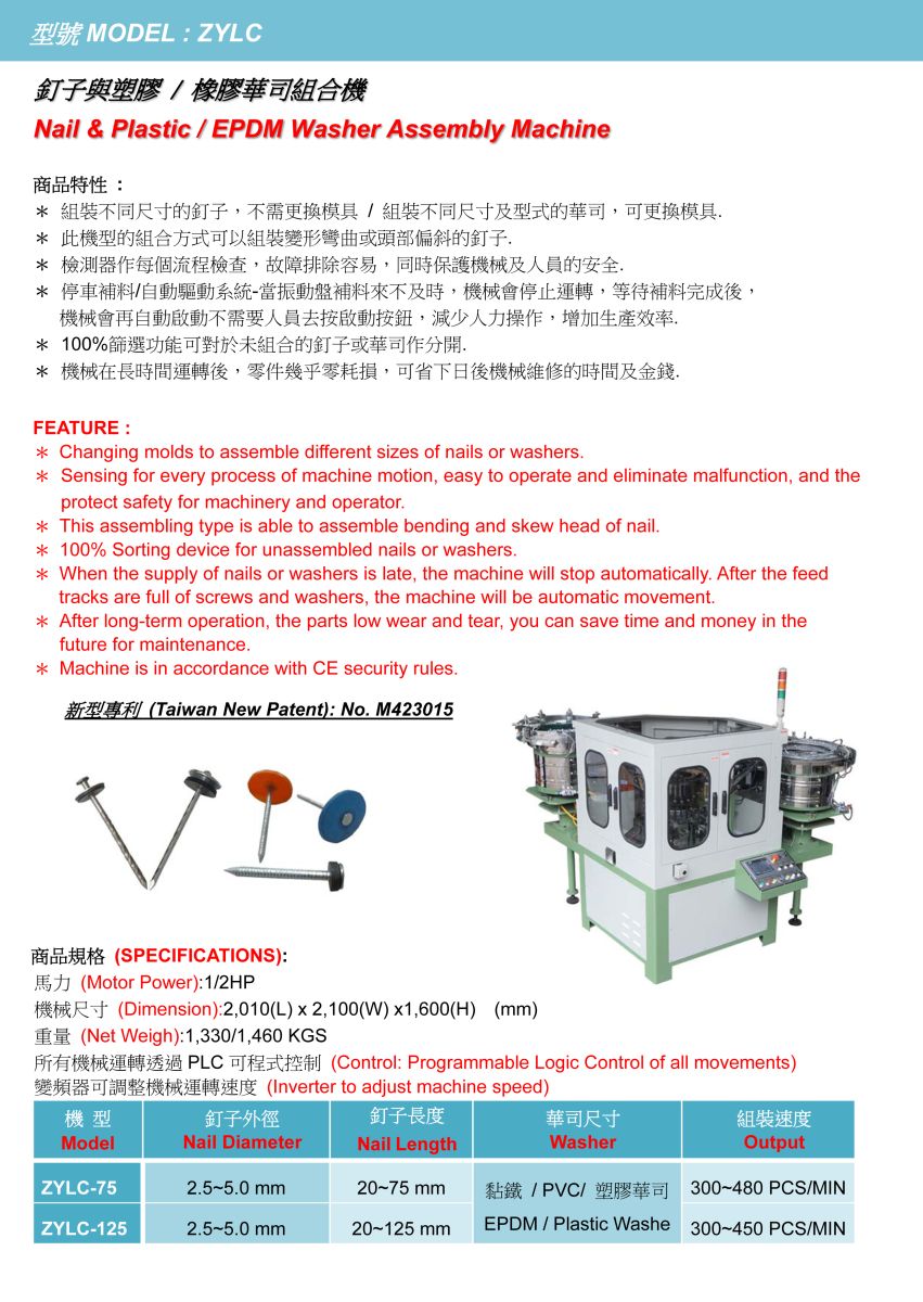 ● 組裝不同尺寸的釘子,不需更換模具 / 組裝不同尺寸及型式的華司,可更換模具.