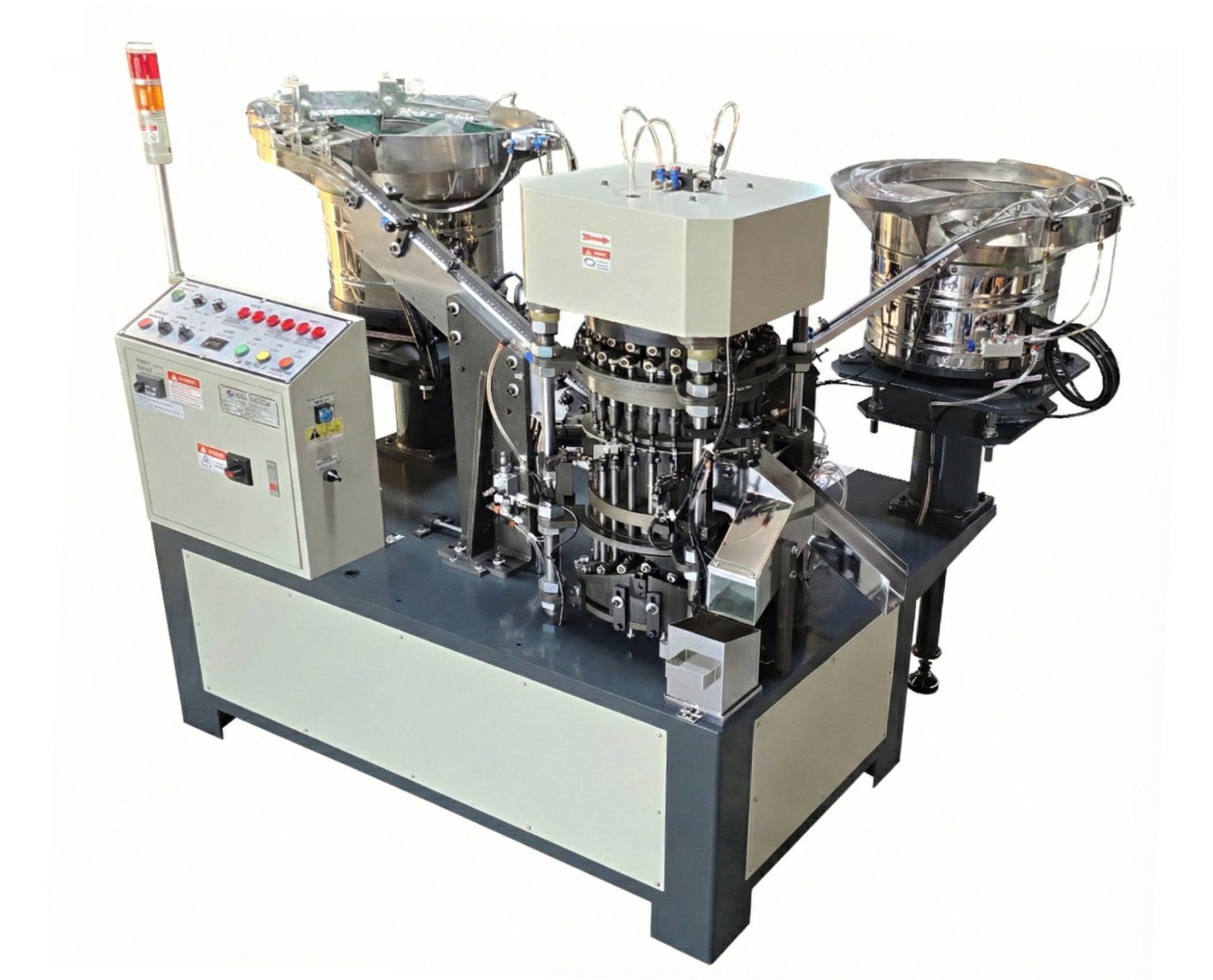 模具可更換設計: 具備高度彈性,可依需求更換模具以組裝不同尺寸的螺絲或華司,提升設備利用率。